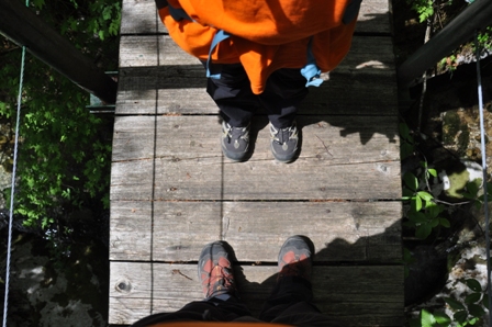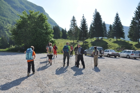 Avtobus nas je poknil dol na parkirišču, kjer vrli Bohinjci seveda računajo.  Vse. Parkirišče, cesto, pot, vse, kar se da in poleg tega še vse, česar se ne da. Po pravici povedano mi gre to plačevanje strašansko na živce. Beda, beda in še enkrat beda. Ampak to je pač domet tega našega turizma, če je treba hotele zapirat, je seveda treba plačevat kje drugje. Svoje obiske Bohinja sem prav zaradi teh reči zmanjšal na minimum in v blagajno Bohinja prispevam po lastni zavesti čim manj morem. Vse to zaradi bedastih parkirnin, cestnin, mostnin in ostalih bednih turističnih pogruntavščin.
