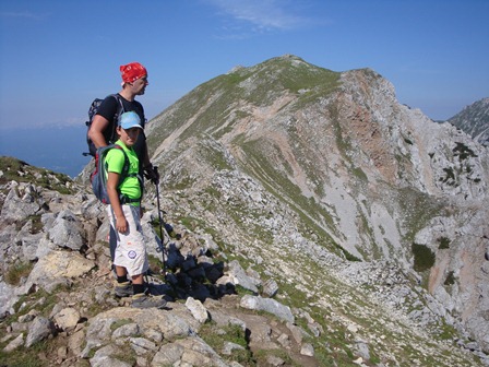 Družino sva srečala malo pod vrhom. Potem so se motivilili okrog naju še na vrhu in potem še celo pot do doline. In prav nič jih ni bilo strah. Zakaj in kako to, da so izbrali med vso tisto stotnijo ljudi prav naju, pa ne bi vedel.