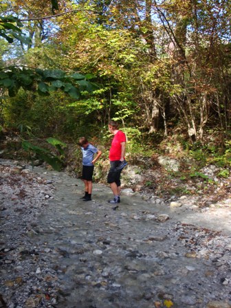 Potem sva dolgo hodila po suhih strugah potokov. Mimo milijonov marel in ostalih gob! Bilo jih je na tone, na tone! Midva pa po grapi naprej in naprej in naprej.