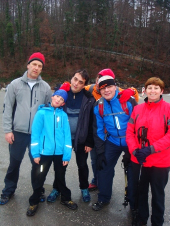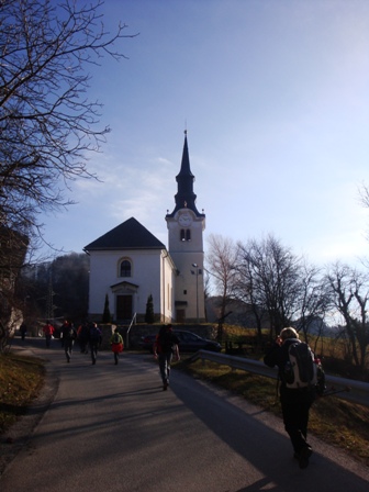 Štirinajst pohodnikov se nas je nabralo, kar je pravzaprav kar veliko! Vreme kar ok, čeprav bi meni bolj odgovarjal mraz, da bi bilo vse bolj zamrznjeno. Čez polja, potoke in kar povprek je mnogo lažje hoditi ko je vse zamrznjeno. Blato je hudir...
