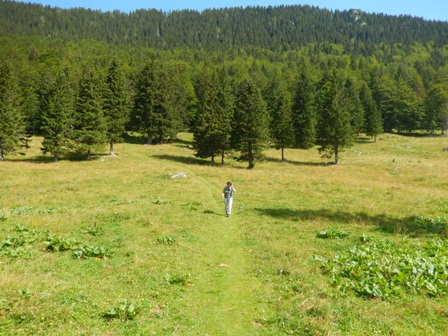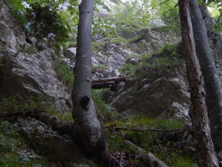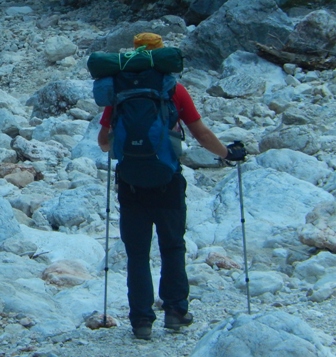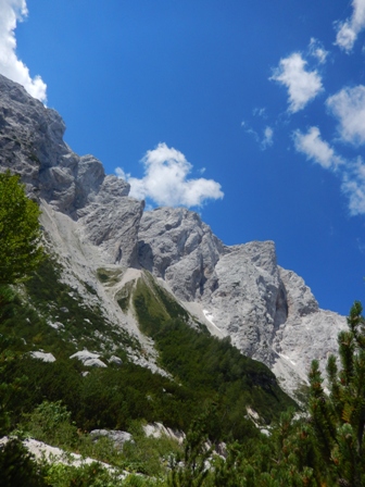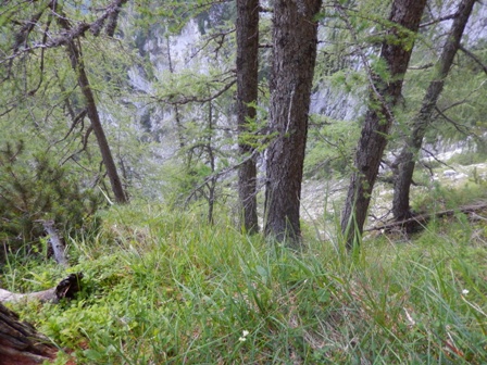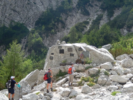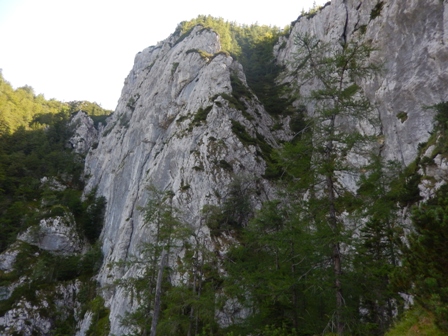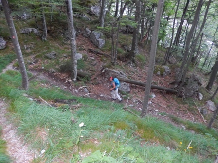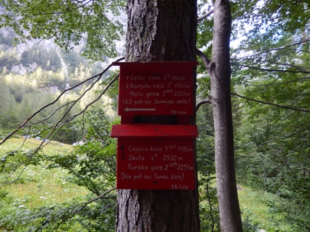 Sem se pa moral ven vleči, ker sem seveda od začetka veselo razglabljal, da greva mimo lovske koče... kako potem odgovorit na vprašanje: kje pa je zdaj lovska koča? Ja, no, mogoče, tam zadaj, mogoče je pa že podrta, stara karta veš, nisva dobro gledala itd. Huh, ni ravno dober začetek, če že lovsko kočo zgrešiš. Kako boš pa vdel začetek poti čez steno, a? Kar tako, na pamet?