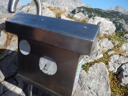 No, vsaj upam, da so tole luknjo nastreljali lovci, ne pa kaki hribovci, ki hodijo naokrog z orožjem...