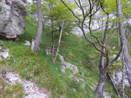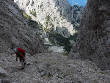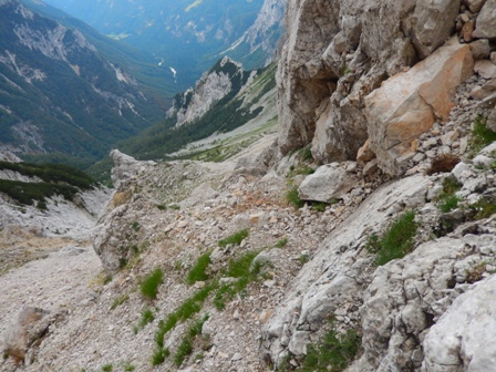 Pravzaprav ni treba veliko. slediš in to je to. Ko prideš do tegale pa veš, da si na pravi poti. Tule gre potem Martinj steza dol čez steno.