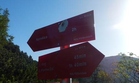 Na Presedljaj se torej končno le prizibljeva. Debele tri ure! A nama se sploh ne zdi, da je toliko... Pred nama se že kaže Konj. Tamle gor nama bo še vroče!