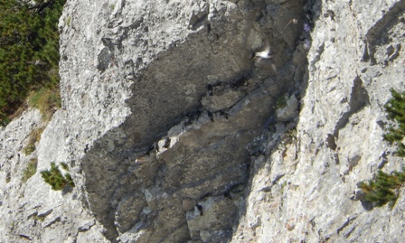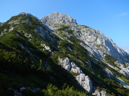 A do konca nisva vedela, če bova sploh prišla do poti s Kamniškega sedla. Nikoli ne veš, če ni kje kake skalne zapore ali prestrme grape. Sva se torej držala zgornjega dela, tik ob steni in vsak ovinek upala, da bo pot prosta!