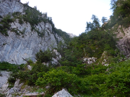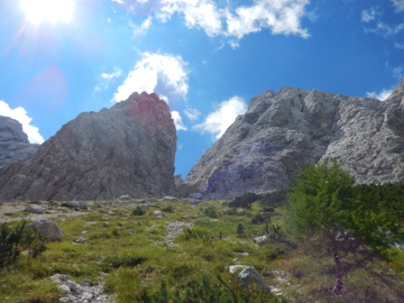 in je konec sence. Samo še skalovje in dolg vzpon proti stenam.
