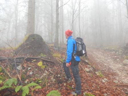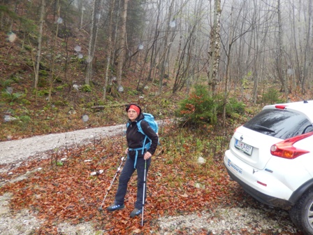 Še blaten in dolgočasen kolovoz, par ovinkov in sva pri avtu. Vsa vesela in zadovoljna. Lušten izlet in to v skoraj popolnem miru, v prekrasnem mokrem gozdu. Ja, tudi megla in oblak imata svoje čare!