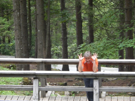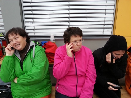 Naju pa prestraši delavec, ki gor na vrhu ploščadi štima neko vremensko postajo in na ves glas kriči kolegu v hišici: "a zdej pa deua?"
