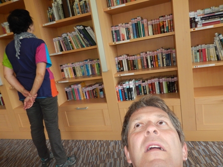 V celem hotelu smo sami. Mi pa receptorka. In knjižnica! In zanimivi kavči, s katerih ne moreš vstat.