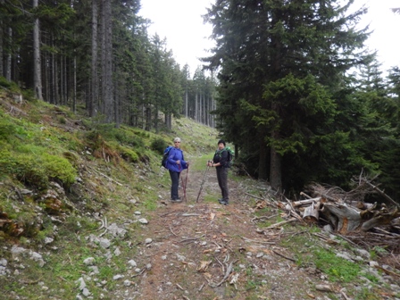 Tja do Smrekovca je preveč dol in sam gozd. Najmanj tri ure sem in tja. Nima smisla. Gremo mi raje tjale gor v gozd.