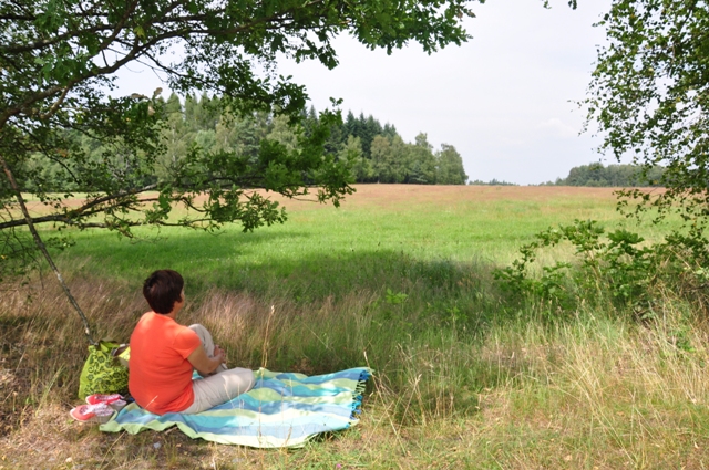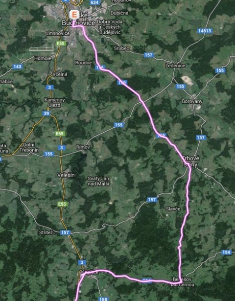 Prav počasi se voziva čez pokrajino, prometa je malo, dan je pa še sončen, dež šele prihaja, zato se nama ne mudi. Le držat se bo treba malo bolj v levo, da prideva nazaj na cesto. Ali pa direktno v Češke Budejovice!