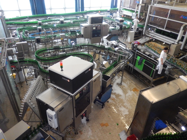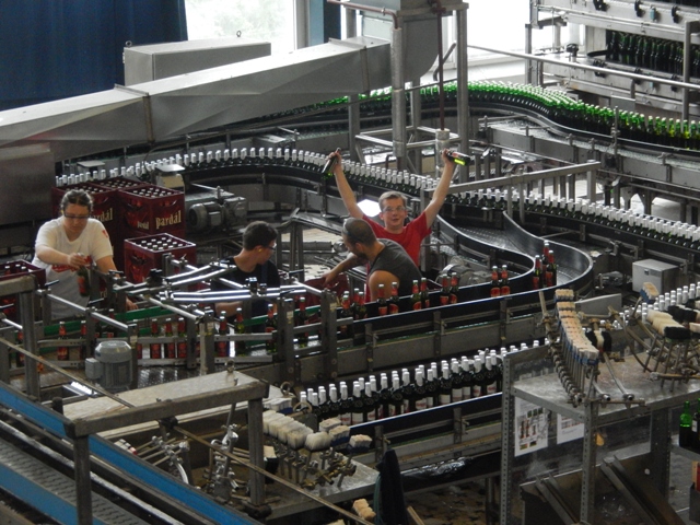 A od vsega še najbolj navduši linija pakiranja! To pa je nekaj za gledat! Tehle par ljudi je ročno zlagalo flaše na linijo, ker so jih hoteli drugače zapakirat, drugače cela hala ne potrebuje več kot par ljudi. Rado se slikajočih se ljudi.