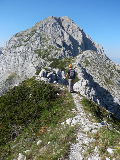 Do vrha vodi še nekaj poti in nekaj višincev. Vročina pritiska, preko grebena pa iz doline Kokre prav lepo piha in naju ohlaja in suši. Dehidracija v polnem teku, dehidracija, ki se je seveda niti ne zavedaš, a počasi prihaja za teboj.