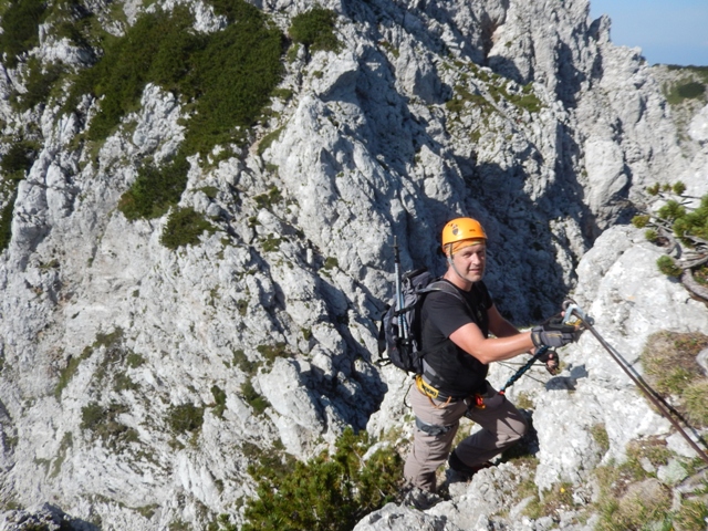 A treba je kvišku, samotna, ozka markirana pot, ne prav veliko uporabljana, zarjavela varovala, še v dobrem stanju