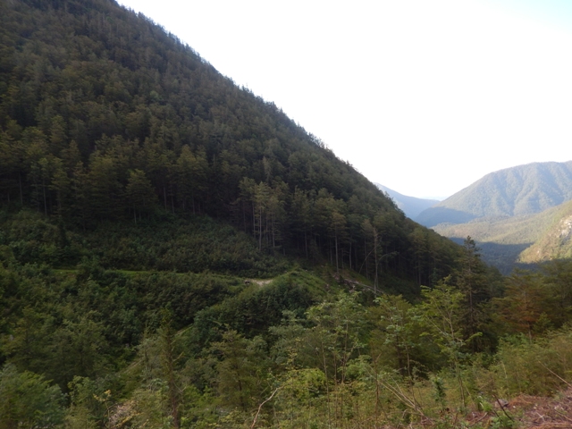 Še malo in že smo iz gozda, pred nama pa se že riše greben med Kalško goro in Kalškim grebenom - tamle nekje bova čez kako uro, dve! Ravno tamle na sredini bi morala biti nekje strah vzbujajoča Škrbina!