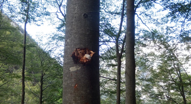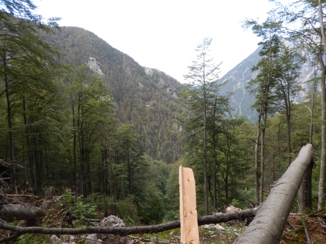 Povsod je vse podrto, letos je bilo res bolj težko leto za hosto. Nad Klinom spet - spet - vse podrto. Kar naprej podira, pa sneg, pa veter, pa... Še lovska koča se celo zdaj vidi na nasprotni strani!