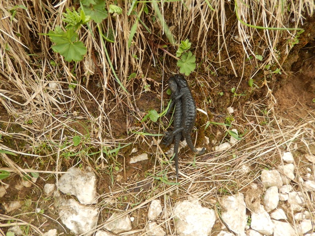 Na Sedlu je velikokrat polno planinskih močeradov, sploh, če je kje v bližini dež. Mene je vedno impresioniralo kako - hudirja - se te male živalce sploh najdejo med seboj v vseh tistih širnih planjavah? Tokrat sva srečala dva primerka, ki se pri svojem opravilu prav nič nista pustila motit. Vrsto je treba nadaljevat, s čimer sva se strinjala tudi midva in ju pustila, da v miru opravita. Če sta sploh ohranjala vrsto, kaj se pa midva spoznava na salamandre...