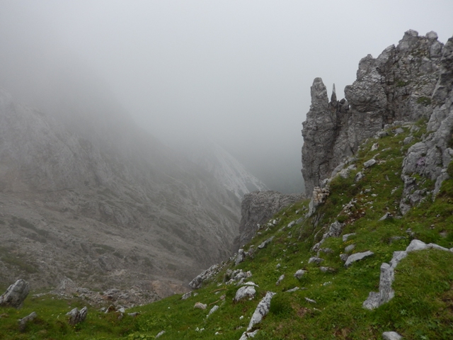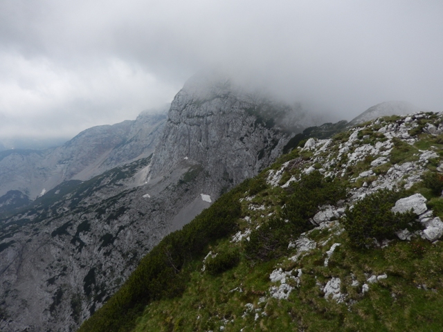 Prišla sva sicer do roba grebena, ampak kaj več od tega ni bilo - pogled na drugo stran je bil nekako razmazan: