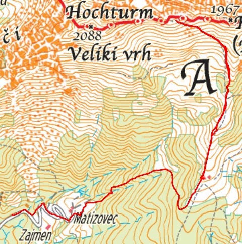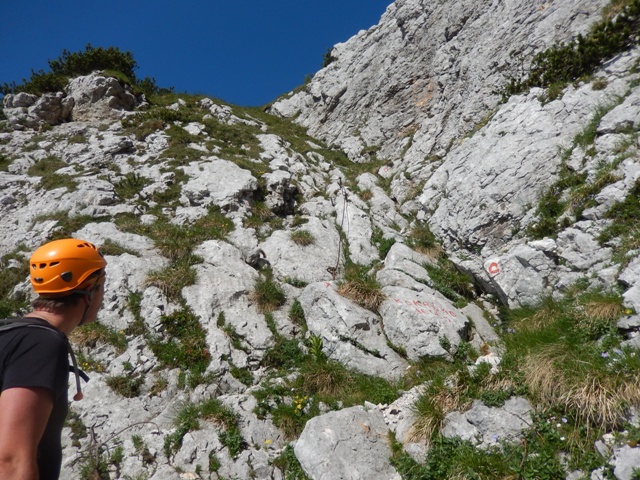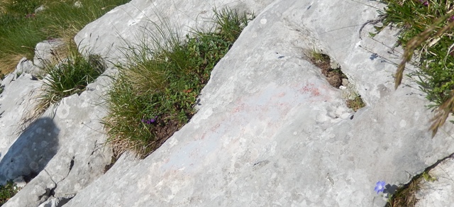 Opazujem malo za starimi potmi - kje neki se je šlo včasih na Kalški greben in ali lahko še kje drugje prideš gor na greben, ne samo po markirani poti, ki gre precej v desno, naokrog.