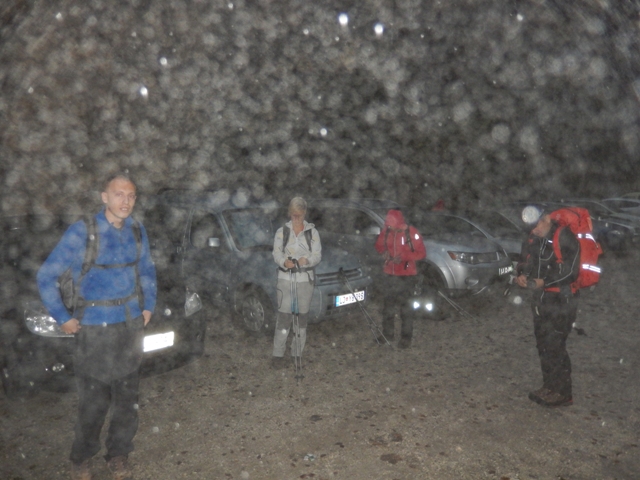 Začeli smo na Planini Blato, 18.10. ob pol sedmih in takoj nas je postavilo na realna tla - presneto slabo. Megla, dež in milijon pohodnikov!
