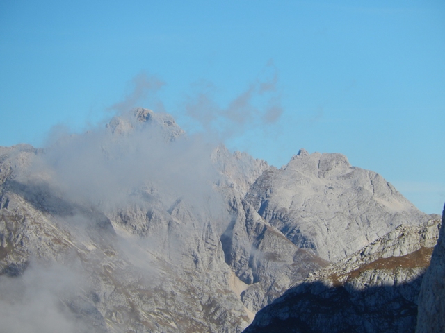 Kako pa je kaj na drugi strani, tam, od koder smo prišli? Tam je malce več megle, Peči ne dosežejo pogleda iznad nje.