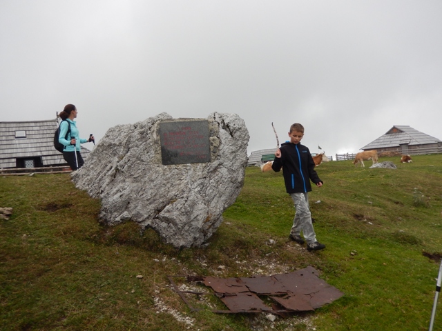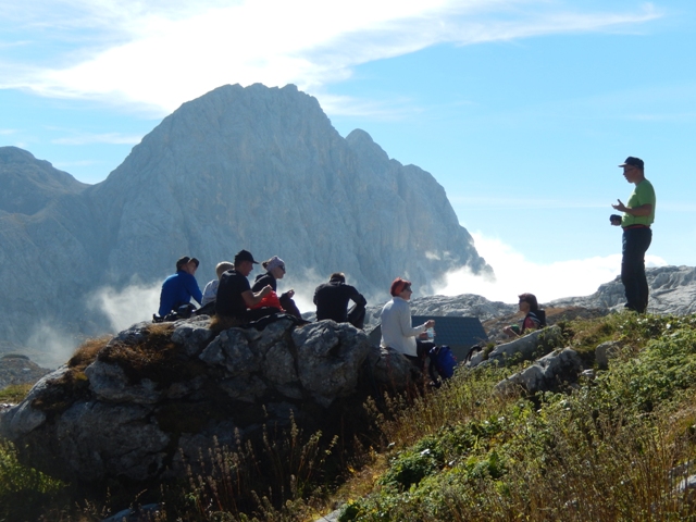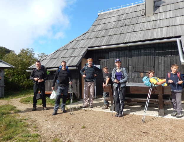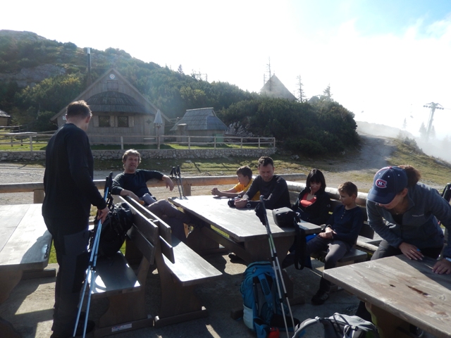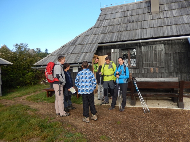 No, potem smo pa že pri Zasavski koči na Prehodavcih. In tule Boštjan v vlogi učitelja, učenci pa prav pridno poslušajo!