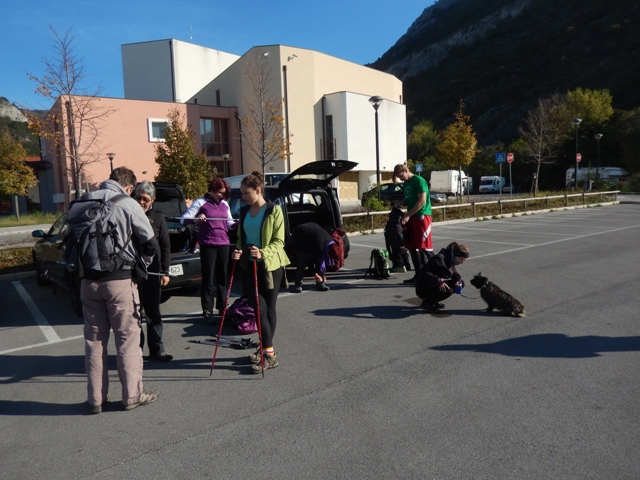 Začeli smo v prekrasnem dnevu v Boljuncu, pri novem kulturnem domu je veliko parkirišče, zgleda da res že dolgo nisem bil tam. Nas se je pa kar veliko nabralo!