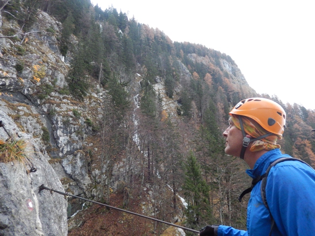 Mi smo jo tokrat zaradi večje skupine mahnili kar po običajni poti do cerkvice Sv. Marije, na razglednik, mimo slapa do stražarnice in po drugi strani v hrib do predora, po trasi železnice in preko razglednika navzdol do planinskega doma. Planirala sva približno štiri ure.