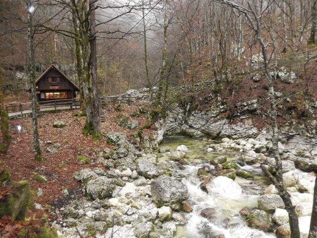 No... pa... ja. In v tem deževnem dnevu, ko prav nič nikjer ni odprto in v celem Bohinju nimaš kaj počet (razen hodit čez Komarčo), deluje pa pobiranje vstopnine! Juhej, vse slovensko skoraj izumrto, nikjer gostilne, nič, a tam, kjer se kaj pobira, tam pa se pobira! Turizem in pol. Moram pa jih pohvaliti, saj poleg vstopnice tokrat dobiš tudi vroč čaj. To pa je pohvalno, v takem vremenu pri vseh odprtih gostilnah (0) pride to več kot prav!