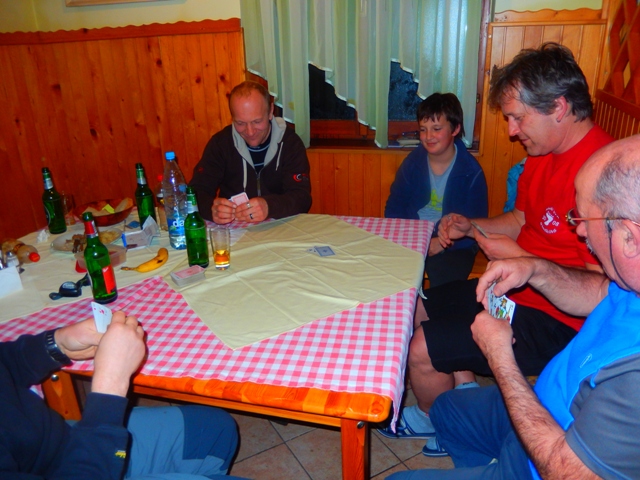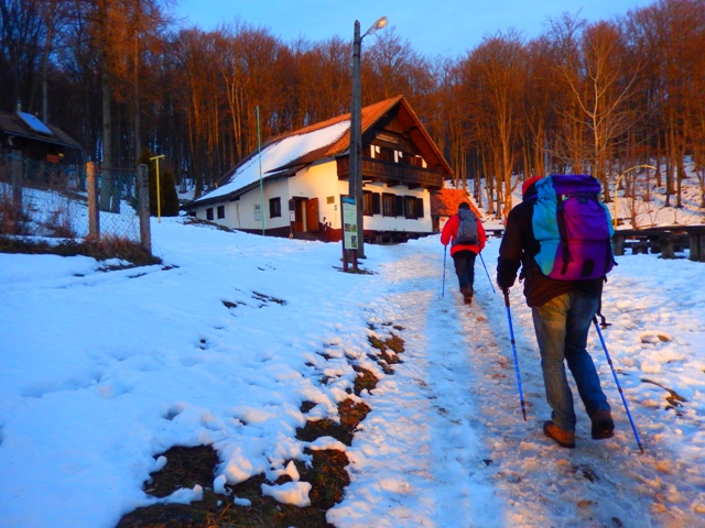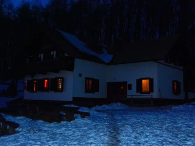 V hosti vse pomrznjeno. Midva seveda imava dereze, jih je pa kar nekaj, ki jih nimajo. Kako bo tem uspelo, se sprašujeva in upava, da bo do takrat, ko bodo šli dol, razmere boljše. Gor še gre, dol je pa že malce težje, če je vse pomrznjeno.