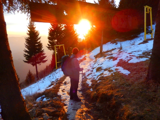 Ponovno se nama ni nikamor mudilo, še strmina se nama ni zdela prav huda, ker sva kar naprej počivala, se smejala sončku in uživala ta pomladni prvi zimski dan.