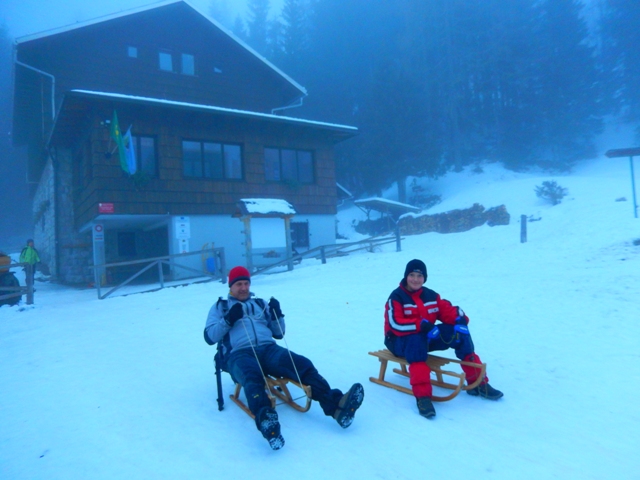 Smo imeli pa srečo, naslednji dan je bilo krepko pod ničlo in ves tisti žmoht je dodobra pomrznil in nekdo se je ravno naslednji dan poškodoval pri spustu z Valvazorja! Če si predstavljam, da je tista cesta pomrznjena... ufff, to pa bi res letelo. V jarek najbrž.