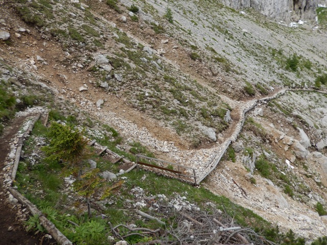 Sestop z Raduhe prek Durc me je le čisto malo skrbel. Že od 2010, če ne že od prej, je speljana lepa nova pot in se ni treba matrat po samem melišču. Seveda tega PZS v vseh teh letih še ni "revidirala" in se pot na Raduho še vedno vodi kot zelo zahtevna pot