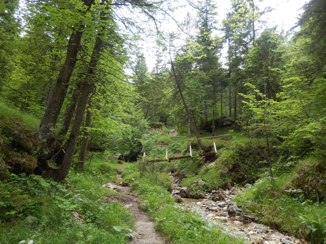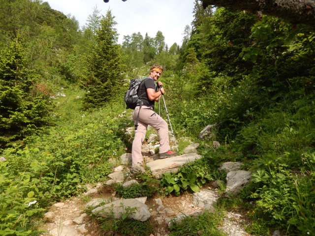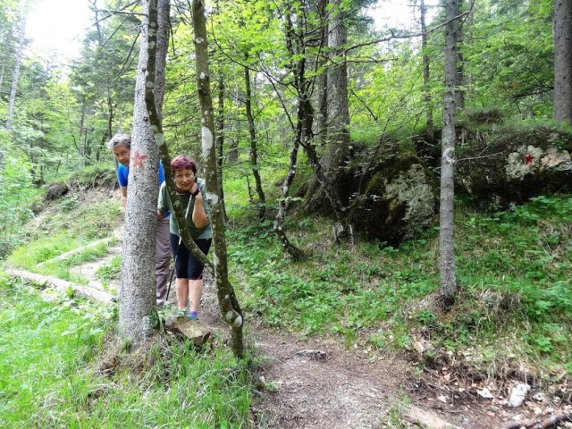 Pot me malo skrbi, vedno se mi vleče, je pa res, da še nikoli nisem šel tule gor, vedno dol. Dol pa se tako ali tako vedno vleče. Tokrat - za gor niti ni tako hudo. Pravzaprav smo kar hitro, čeprav gremo lepo počasi po pameti, že pri odcepu.