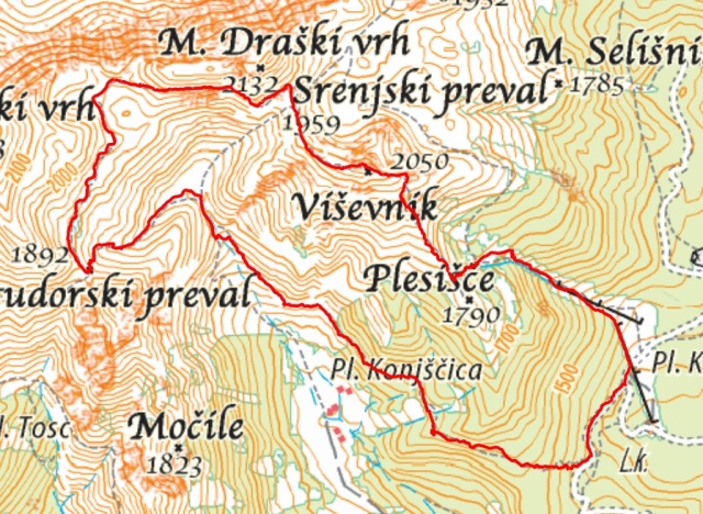 A načrt je bil lep in pravzaprav tudi povsem izvedljiv. Jasno pa je, da se na tak pohod vedno odpraviš s kar nekaj podvariantami in spremembami trase. Za vsak slučaj. Če te naprimer ujame nevihta na grebenu, sredi ničesar, kaj boš? Nisva avanturista, ki bi si polnila adrenalinske zaloge, le pohodnika sva. Tam gori je lepo, luštno, tam gori sva zadovoljna in srečna. Nevihta naprimer pa ni prav nič lepa stvar in po mojem je stvar razuma, da imaš vedno še plan B,C, D in še kaj na voljo.