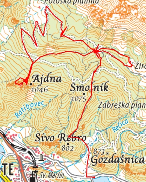 Dobro uro do odcepa v Dolskem grabnu, skupaj 3:30h do Zelenega roba, z Gradišča do dol pa tudi 3:10h. 13,5km in 1900 višinskih metrov. Precej polna tura torej! (Čeprav me teh 1900 višincev precej čudi, tile gpsji... ni jim preveč za zaupat, sploh ne v takih grabnih in prehodih... prej bi rekel, da jih je bilo kakih 1200-1300.)