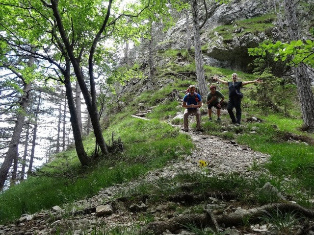 Me je pa skrbelo, kako bo na tistem strmem delu s travami. Moje strme trave... Sem se držal skupine in se držal, potem me je pa nek brezvezni telefonski klic zadržal (sploh ne vem, kdo me je klical, sem bil preveč odsoten...) in sem moral na vrat na nos loviti skupino.