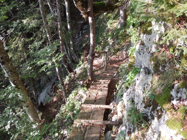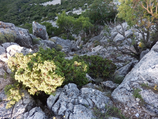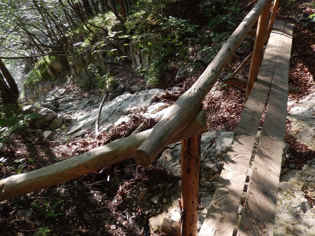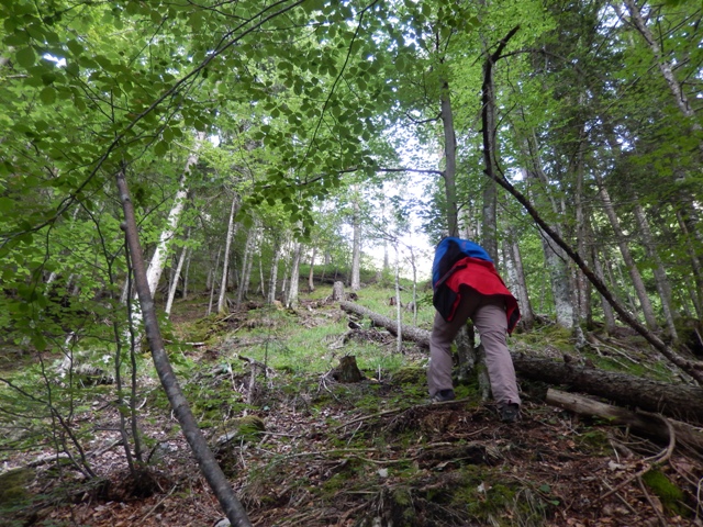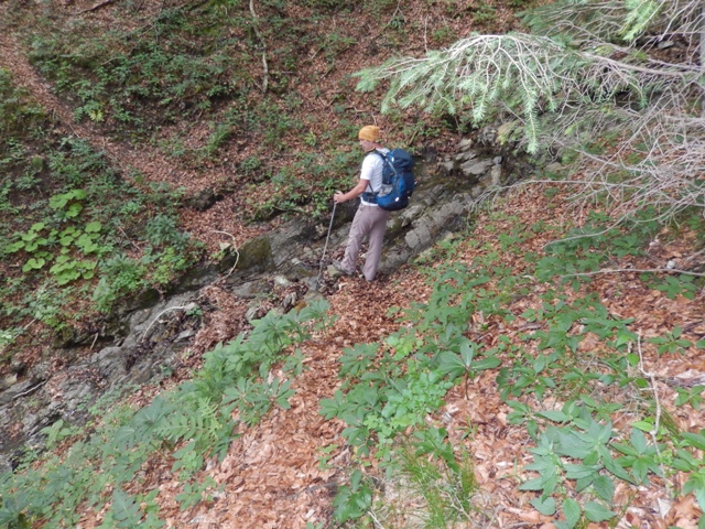 Izkazalo se je, da je pot strma ko hudir in povsem neobljudena, kdo ve, kdo je tule nazadnje hodil... A za razliko od vedno, tokrat nisem imel težav jaz, temveč Helena. Ni in ni ji šlo dol po tisti strmini, meni pa se ni zdelo prav nič hudega. Najbrž težak nahrbtnik naredi svoje in če je celotna pot v listju in žiru, kjer si kot na kotalkah, to najbrž terja davek.