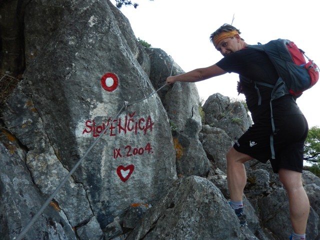 Ker pa sva midva ta prava planinca, jaz celo strokovni sodelavec prav za markacije, se ne dava zavest in zvesto slediva markacijam!