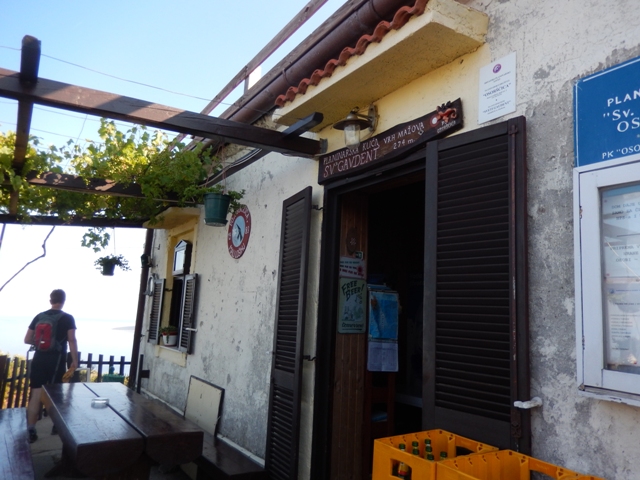 Smo hoteli začet hoditi vsaj pred osmo, da nas ne bo sonce prekmalu lovilo, a vse ne gre tako enostavno! Parkiramo, se oblečemo, navlečemo težke nahrbtnike in se odpravimo. A takoj za vogalom, čaki... a ni tole Mladen? Pa glej, gor kavo pije Ingrid! Ha!