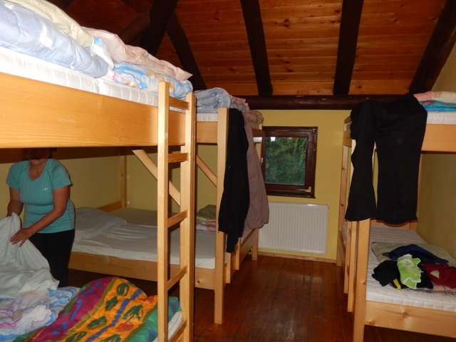 V Domu planincev sva bila - poleg prijaznega osebja - edina. Kdo drug pa še hodi naokrog v takem? Tako sva imela tuš, kopalnico in skupna ležišča čisto zase!