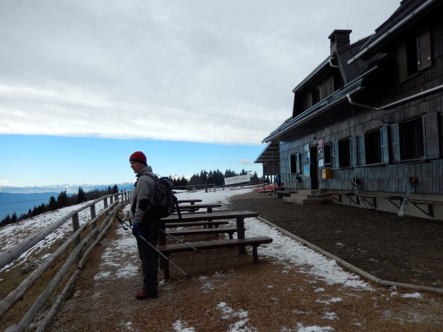 In končno pri Jurčku. Na zasluženo pivo, malico, počitek. Meni se vedno zdi, kot da smo že na koncu. Do vrha je samo še hrib, saj prideš, počasi, pa gre.