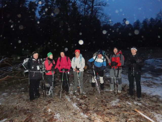 Tako se nas je letos nabralo osem junakov in zjutraj 16.1. je hudo snežilo.