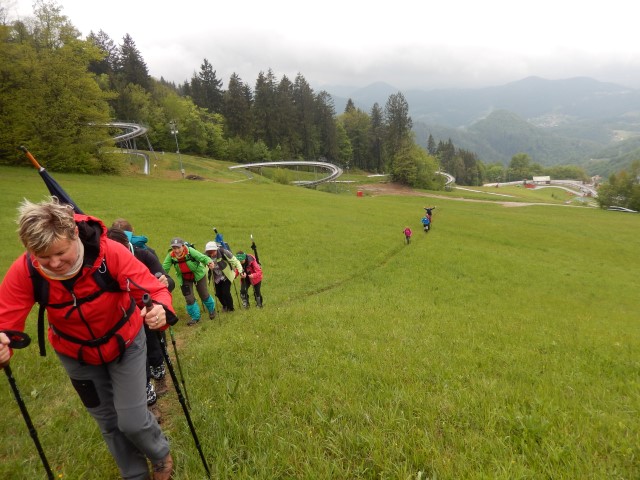 Zato je Helena hitro opazila, da bo treba kar kreniti na pot, drugače se bom še sam kam zavlekel in me ne bo na spregled še kak teden. Zato smo se kar lepo zbrali, še vsi tisti za navzdol!
