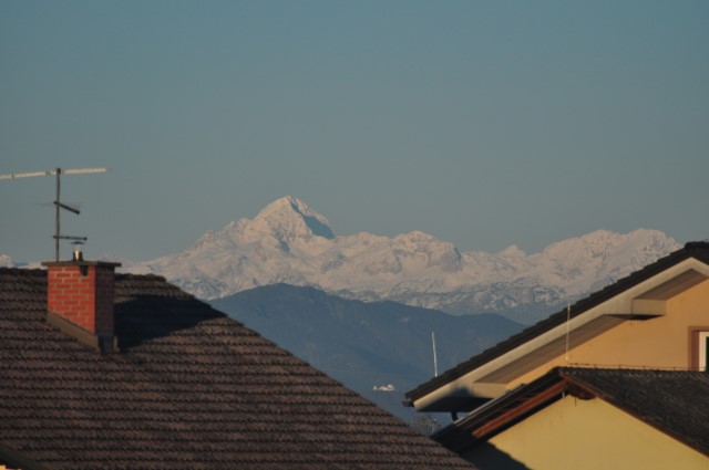 Doma se vsekakor premalo zavedamo tega daru. Kar pa ni čisto prav. Bo treba več gledat tjale čez proti Triglavu! Ker, če bolje pogledaš - kakor sem jaz tokrat, ko sem sliko povsem približal in jo potem še povečeval, dokler nisem videl prav vsega še v prvi liniji: Tosc, Veliki Draški vrh, Viševnik, Mali Draški vrh. Vse se vidi, ej! No, malo moraš povečevat ali pa čakat ravno pravo svetlobo, da se prvi greben loči od višjega triglavskega.