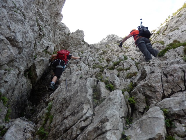 Počakali smo še enega, ki je že plezal navzdol - najbrž ni mogel spat! - potem smo se pa pogumno zaleteli navzgor. Jaz seveda prvi - da ne morem ostalim preveč težit.