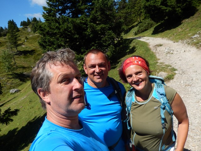 Prehitevali seveda nismo, nismo tako hitri, smo pa tiste ta hitre spuščali naprej. Pohodniki večinoma avstrijci, nekaj tudi slovencev, vsi pa zgledno opremljeni.