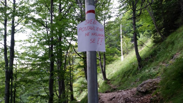 Ob poti nazaj do Doma v Kamniški Bistrici smo našli še zanimive oznake. Prav stalne že ne morejo bit, ne? Take stvari me vedno tako ziritirajo... ko sem pa tak firbec. Kdo je to naredil? Zakaj? Čemu? Kaj pomeni? Aaaaaaa!