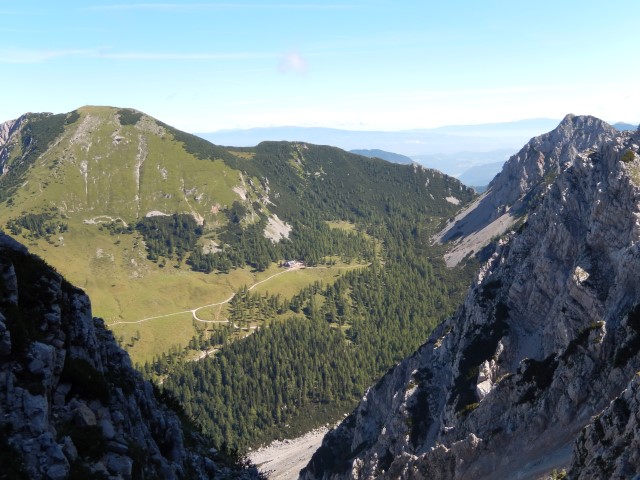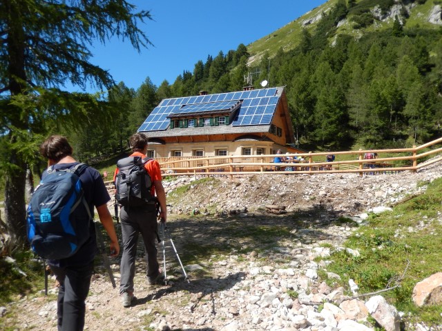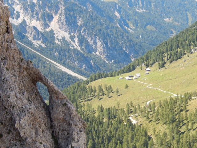Celovška koča nasproti, tam mimo gremo pa nazaj. Neko zabavo imajo avstrijci, vse nekaj odmeva od pesmi! Kakšen praznik, pa ne da že praznujejo 15.8.?