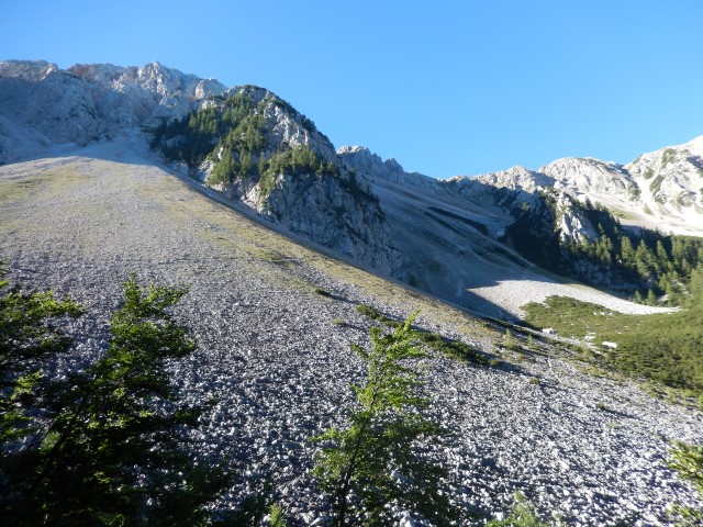 Spet nismo bili prav posebej zgodnji, do tja je kar daleč, vleče se. A severna stran še ni bila v soncu, kar nam je dalo kako urico, dve prednosti pred vročino.